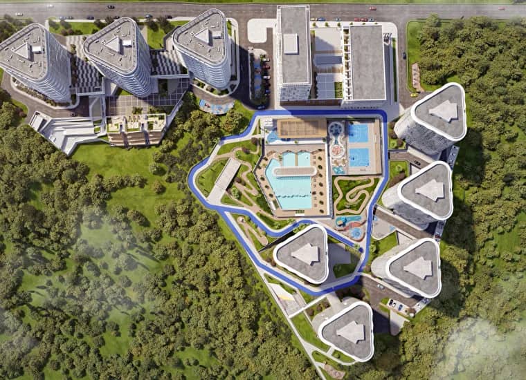 5 бассейнов — два взрослых, два детских и один крытый — создают полноценную курортную аквазону прямо во дворе. А SPA-комплекс площадью более 3200 м² дарит ощущение уединения, восстановления и полного перезагрузки. Турецкий хаммам, массажные кабинеты, термальные зоны — всё, чтобы вы чувствовали себя как в лучшем отеле мира, не покидая резиденции.
