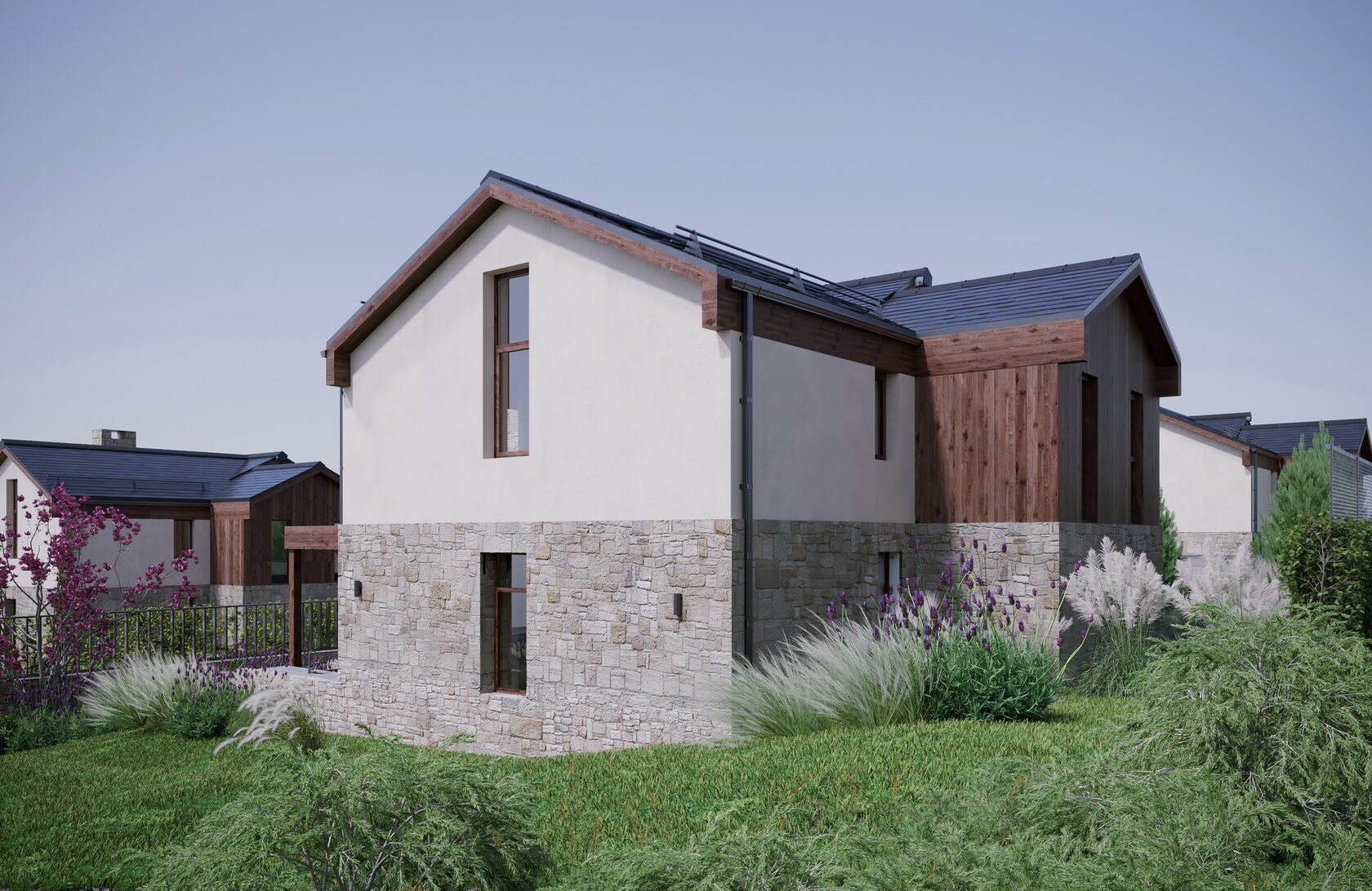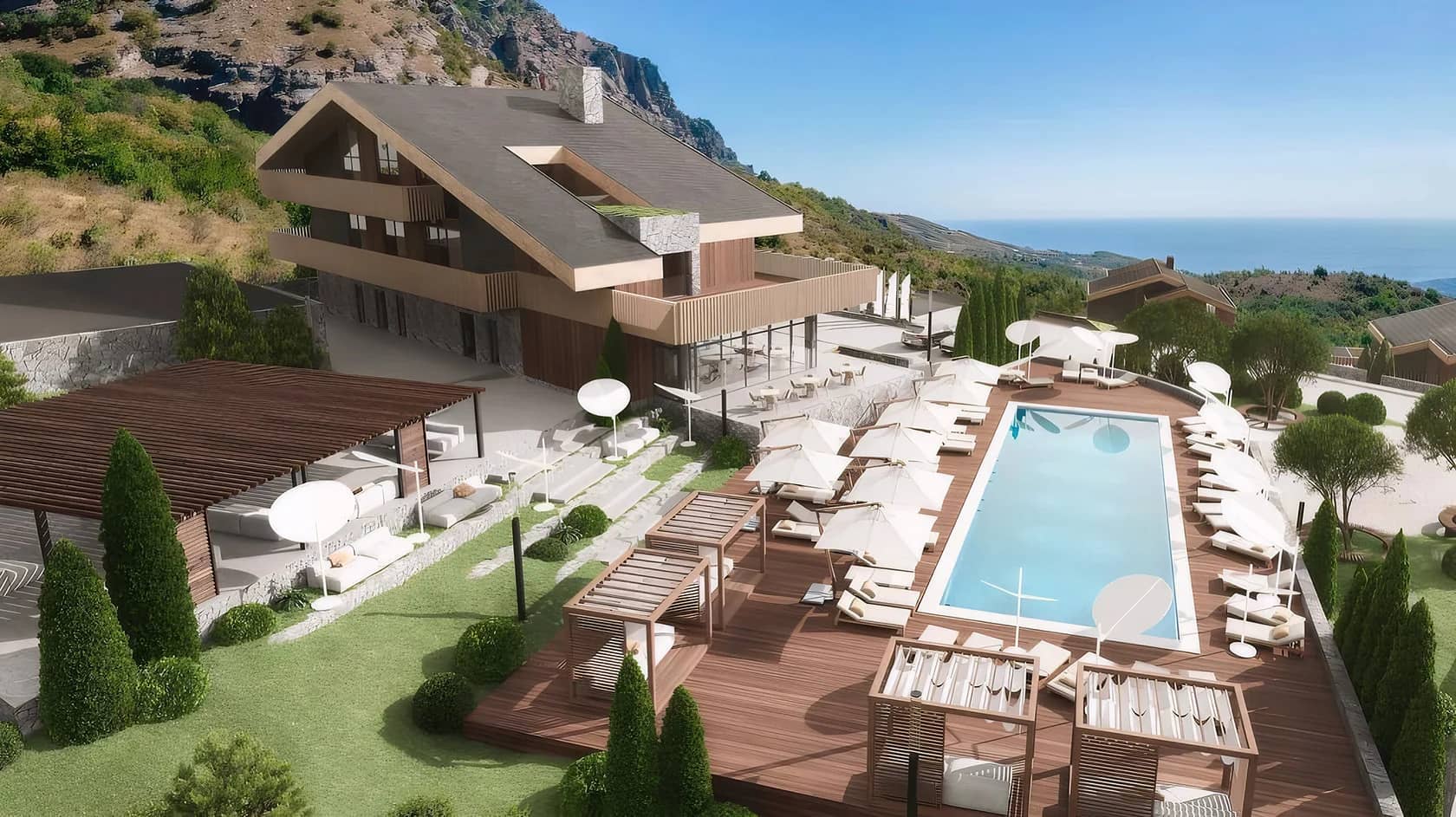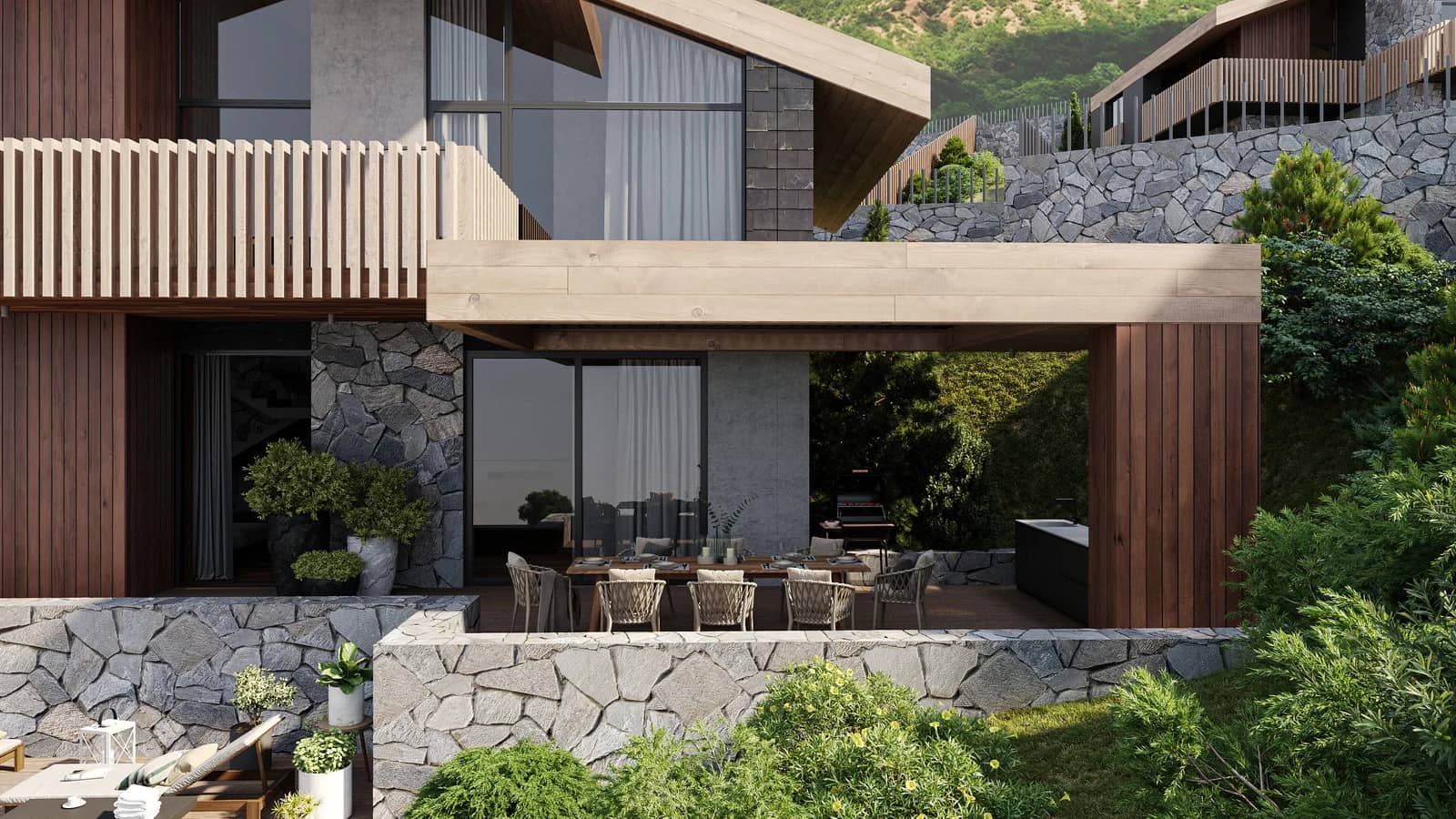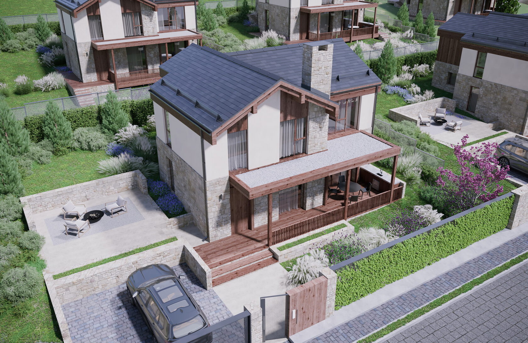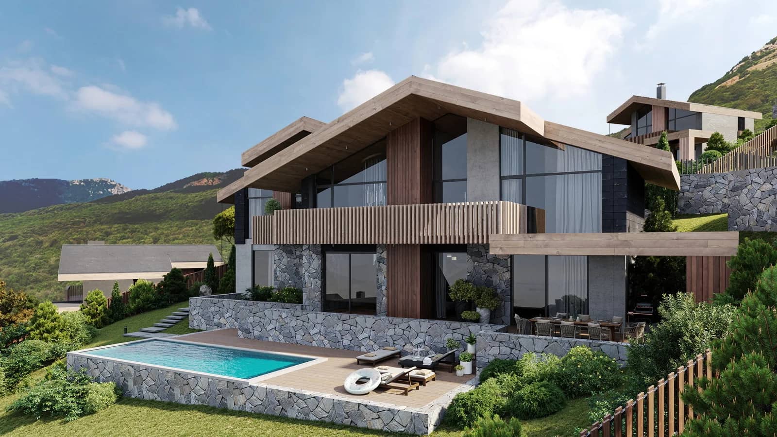 Виллы и коттеджи с архитектурой в стиле «шале» у подножия горы Демерджи с видом на море
