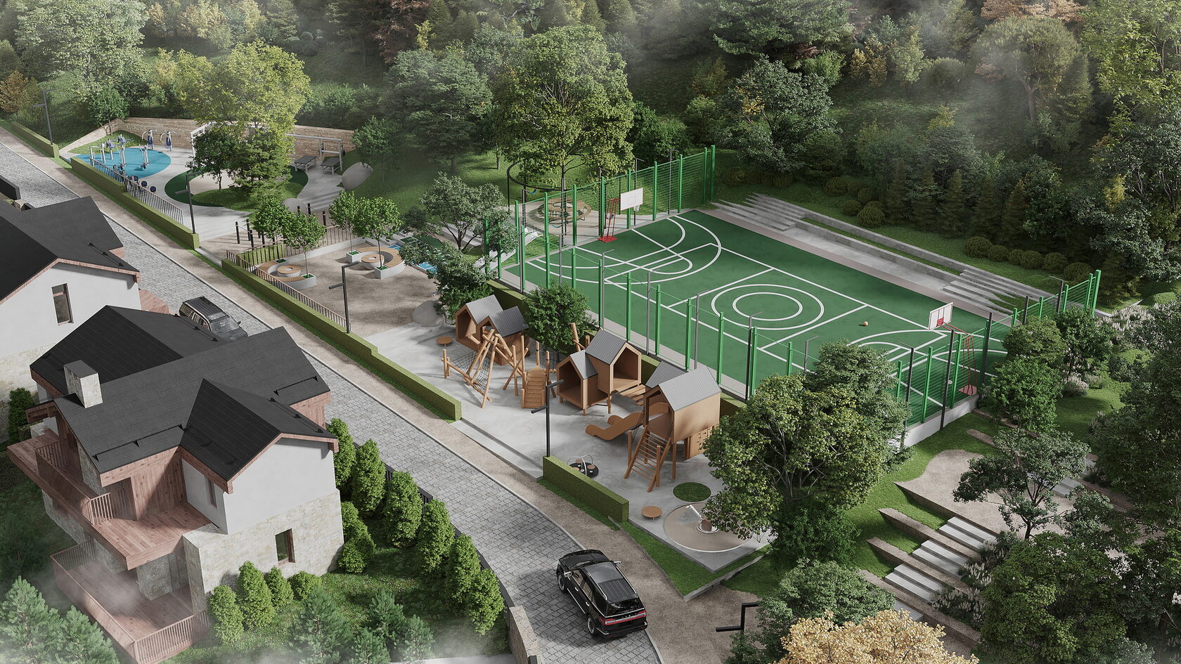 - Многофункциональная спортивная площадка, на которой можно заниматься пятью видами спорта, включая теннис.