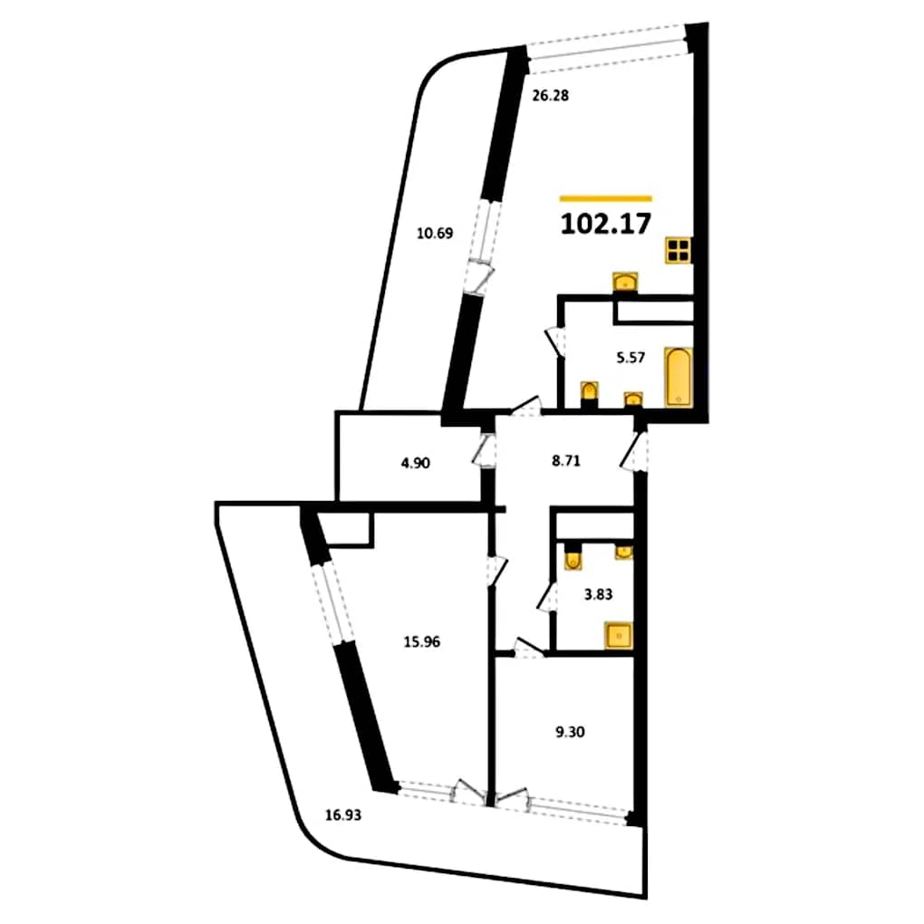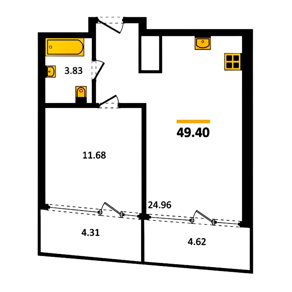 - Санузел: пол и стены – плитка керамогранит Кеrаmа Marazzi 60*60, дверь стандартная;