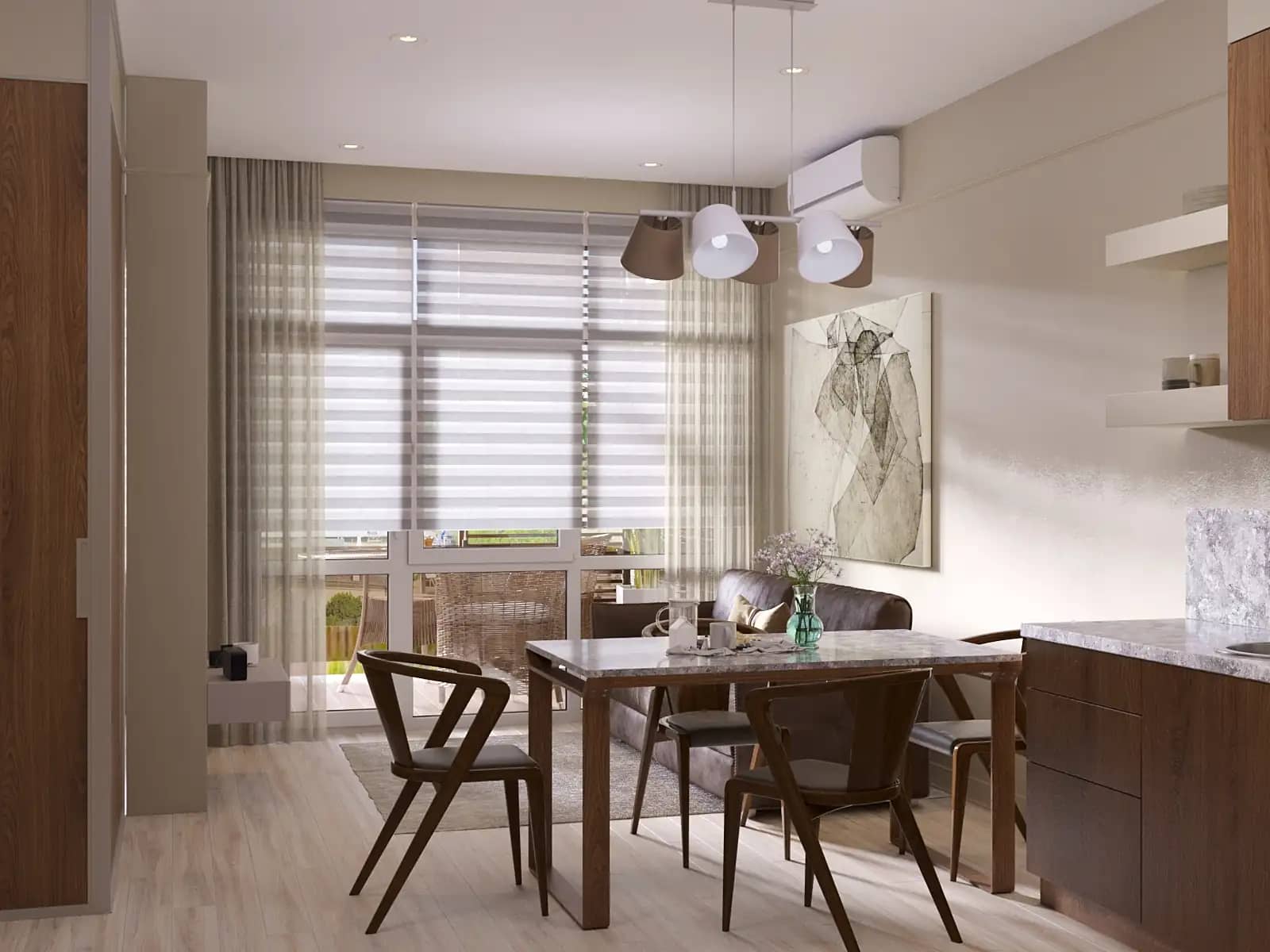 - Техника: стиральная машина Веко, холодильник Maunfeld, телевизор TCL, вытяжка Homsair Delta, варочная панель Hyundai, микроволновая печь Hyundai, кондиционер Hisense Zoom DC Inverter, водонагреватель электрический Electrolux Smartfix.
